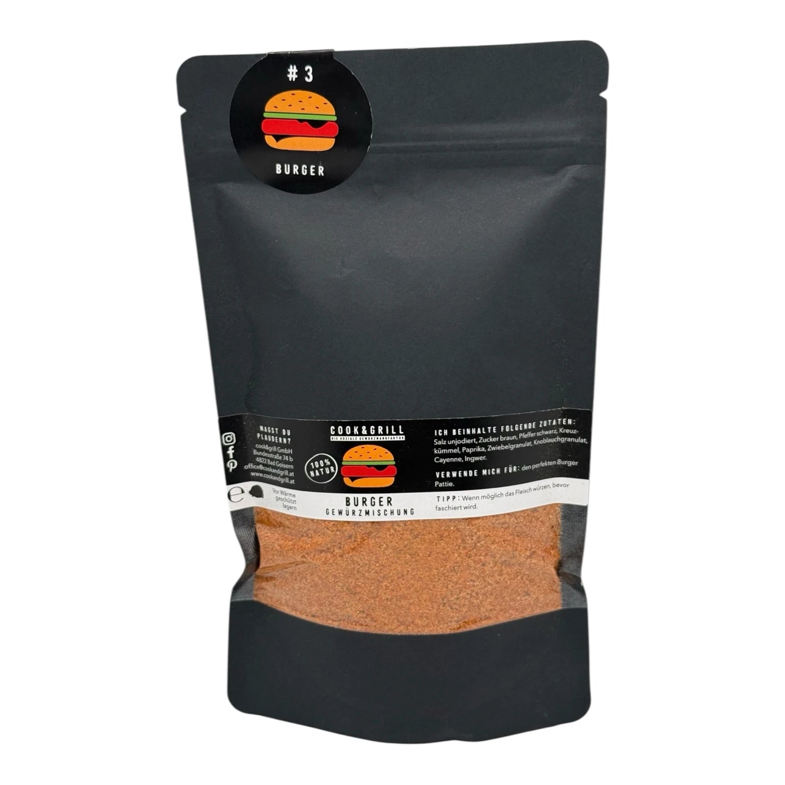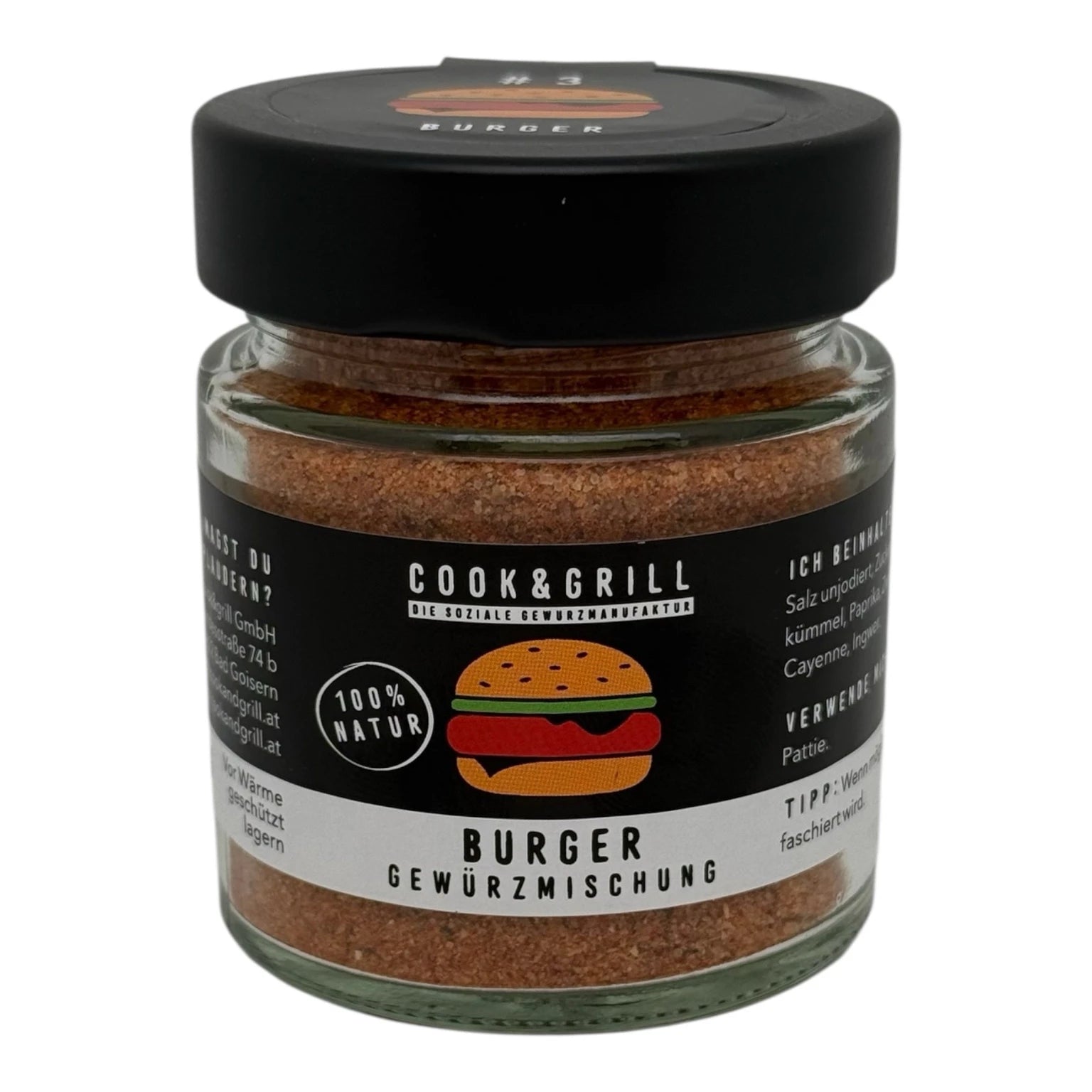 Anwendungsempfehlung: Ca. 8–10 g pro 500 g Hackfleisch Alternativ 1–2 Teelöffel pro Patty Je nach Geschmack ruhig etwas mehr – das Gewürz ist aromatisch ohne dominant zu werden.