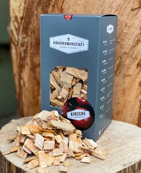 Kirsche ( fruchtig / süßlich ) Einteilung: süßliches Aroma Rauchnote: mild komplett entrindetes Holz Luft getrocknet Holz von österreichischen Bauern Am besten geeignet für: Mit Kirsche hast du das ein mildes und fruchtiges Räucherholz gewählt. Es hat ein angenehmes Raucharoma und man kann es für fast alle Fleischsorten eingesetzt werden HERVORRAGENDE QUALITÄT: BBQ Räucherchips KIRSCHE von Räucherwerkstatt ist naturbelassen, frei von chemischen Zusätzen und stammt aus überwiegend regionalem Forst. Zusätzlich wenden wir freiwillig Lebensmittelvorschriften bei der Verarbeitung an. Wir beziehen KEINE Rohstoffe aus fernen Ländern mit fragwürdigen Arbeitsbedingungen über umweltbelastende Lieferwege